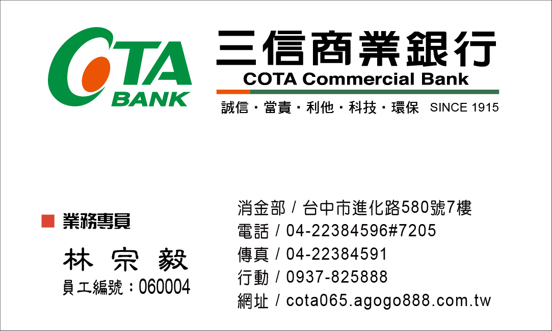 宗毅在三信商銀秉持著『熱忱』『專業』『效率』的精神,來服務大家