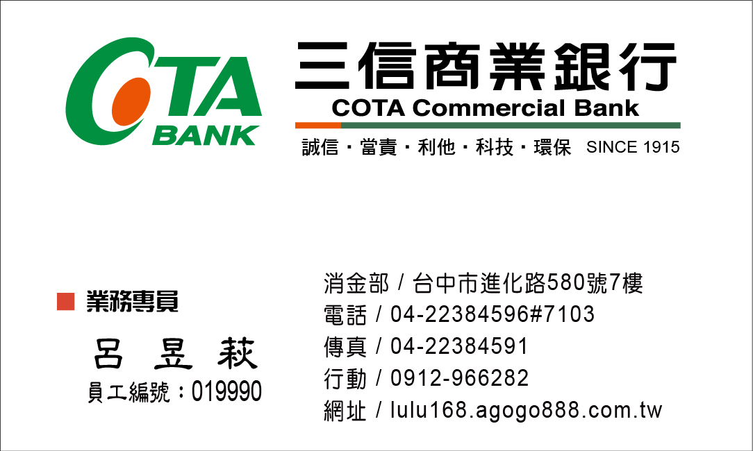 電子信箱︰lulu168@cotabank.com.tw